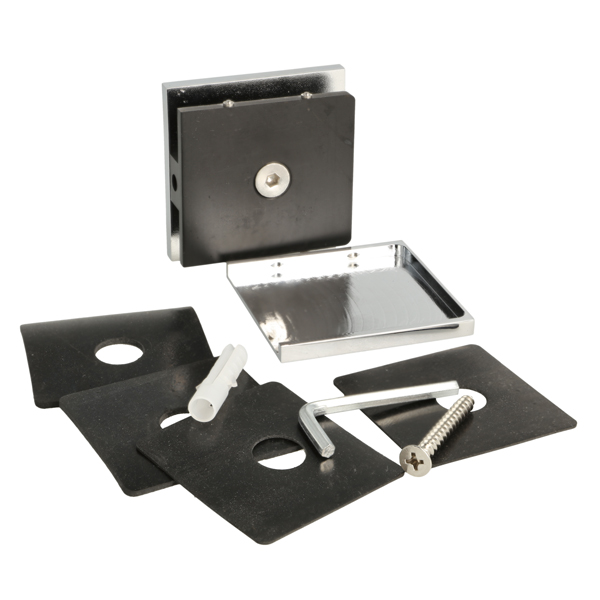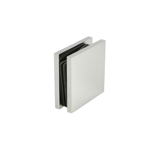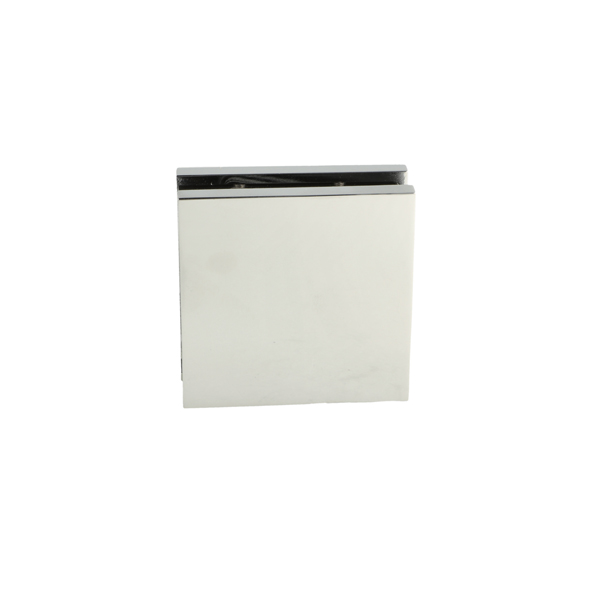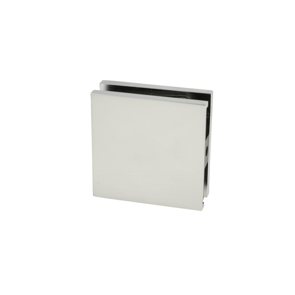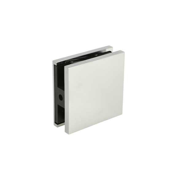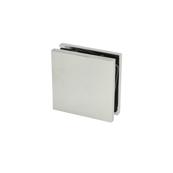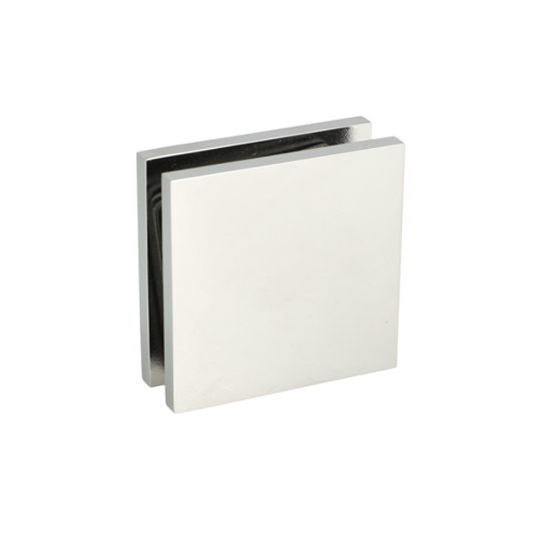Glass Clamp "Lima", 180DG, CPL, Wall/Glass, 60x60x20,5mm, F/ 6-10mm Glass, Wall Mounted By 1 x ø5mm Screw Hole, Glass Mounted By ø14mm Drilling, Hidden Screws, Brass, Alu & SS-304 Material