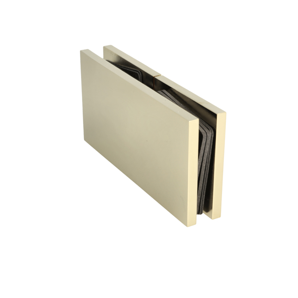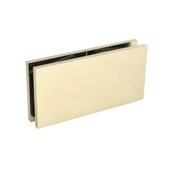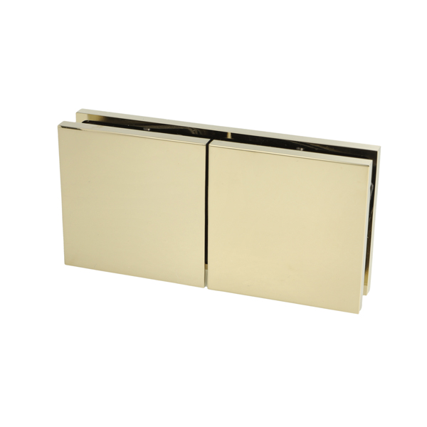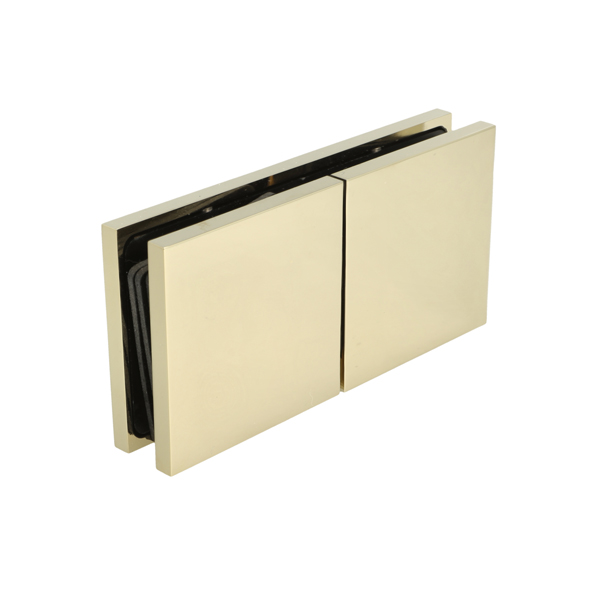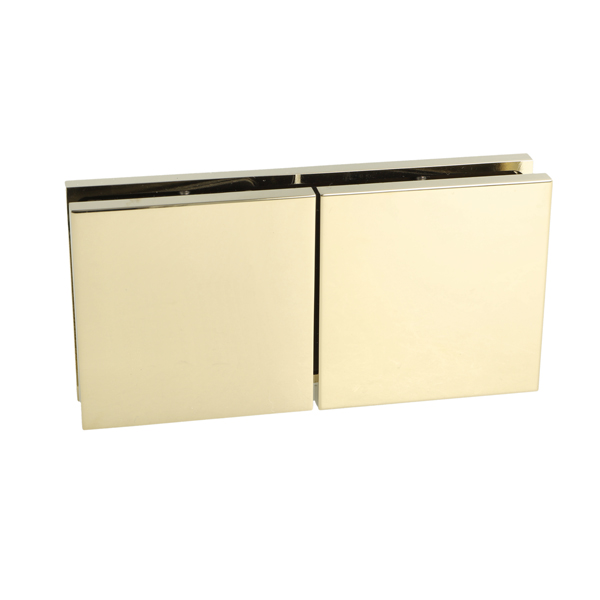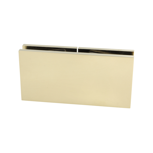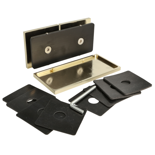 Glass Clamp "Lima", 180DG, Polished Brass, Glass/Glass,122,4 x60x20,5mm, 6-10mm Glass, Glass Mounted By ø14mm Drilling, Hidden Screws, Brass, Alu & SS-304 Material