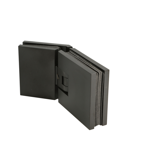 Shower Hinge "Lima", 135DG, Black, Glass/Glass, 6-10mm Glass Thickness, W/15 DG Angle Adjustment Function & 15DG Return Function, Brass Material, Hidden Screws. Black Rubber Gaskets: 4 x 1mm & 4 x 2mm Thickness. Load Capacity Pr. Pair: 45kg
