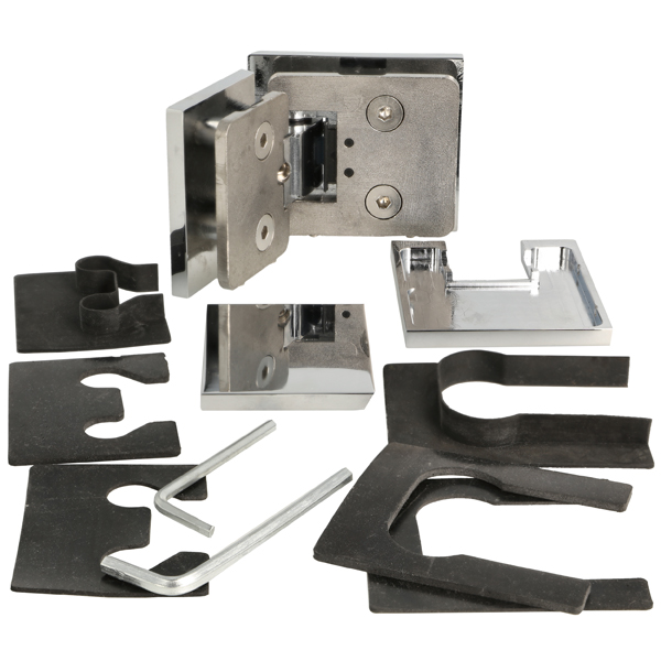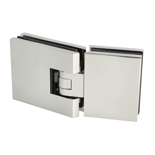 Shower Hinge "Lima", 180DG, Glass/Glass, CPL, 6-10mm Glass Thickness, W/15 DG Angle Adjustment Function & 15DG Return Function, Brass Material, Hidden Screws. Black Rubber Gaskets: 4 x 1mm & 4 x 2mm Thickness. Load Capacity Pr. Pair: 45kg