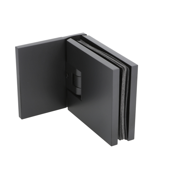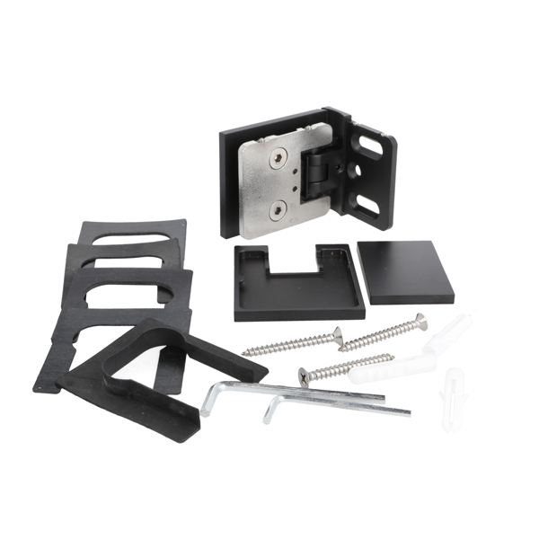 Shower Hinge "Lima", Wall/Glass, Black, Offset Back Pl, 6-10 mm Glass Thickness, W/15 DG Angle Adjustment Function & 15DG Return Function, Brass Material, Hidden Screws. Black Rubber Gaskets: 2 x 1mm & 2 x 2mm Thickness. Load Capacity Pr. Pair: 45kg
