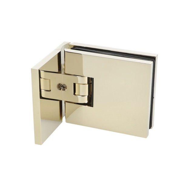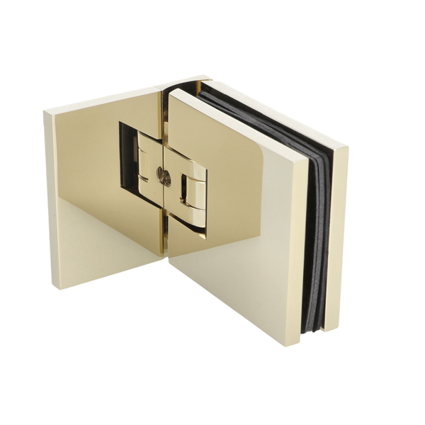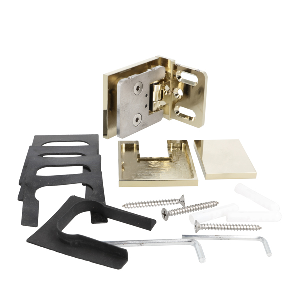 Shower Hinge "Lima", Wall/Glass, Brass Polished, Offset Back 6-10mm Glass Thickness, W/15 DG Angle Adjustment Function & 15DG Return Function, Brass Material, Hidden Screws. Black Rubber Gaskets: 2 x 1mm & 2 x 2mm Thickness. Load Capacity Pr. Pair: 45kg