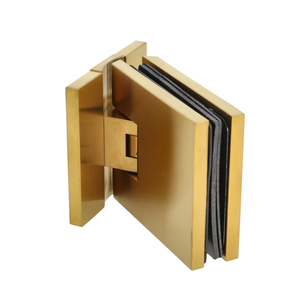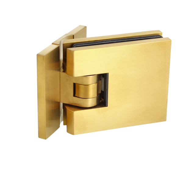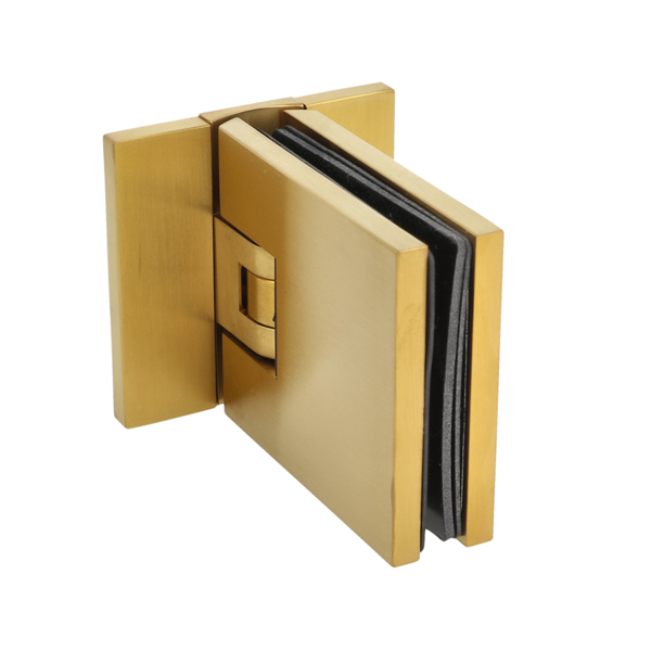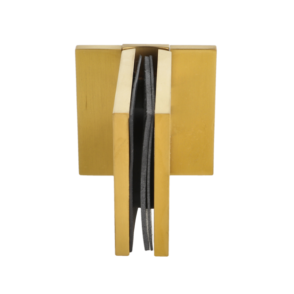 Shower Hinge "Lima", Wall/Glass, Brushed Brass, Centre Back 6-10mm Glass Thickness, W/15 DG Angle Adjustment Function & 15DG Return Function, Brass Material, Hidden Screws. Black Rubber Gaskets: 2 x 1mm & 2 x 2mm Thickness. Load Capacity Pr. Pair: 45kg