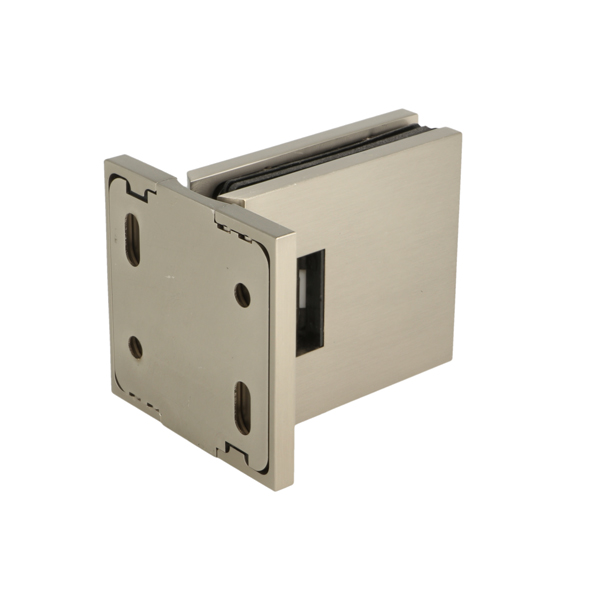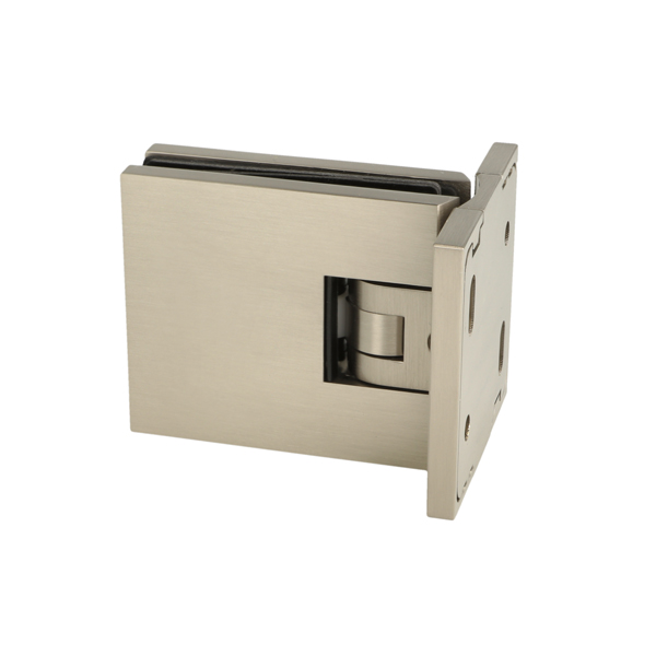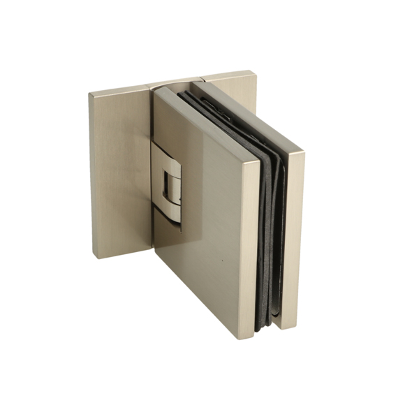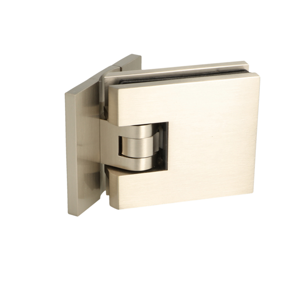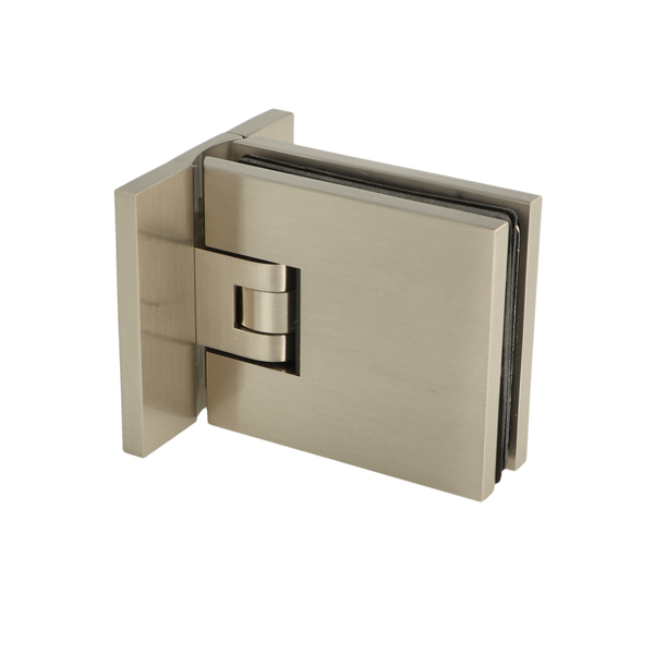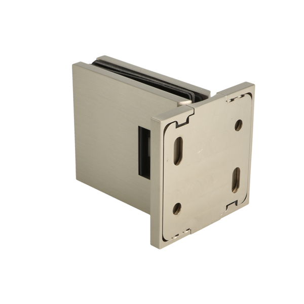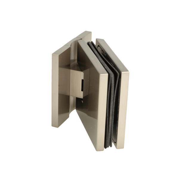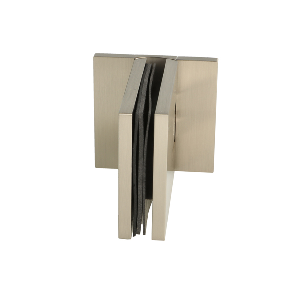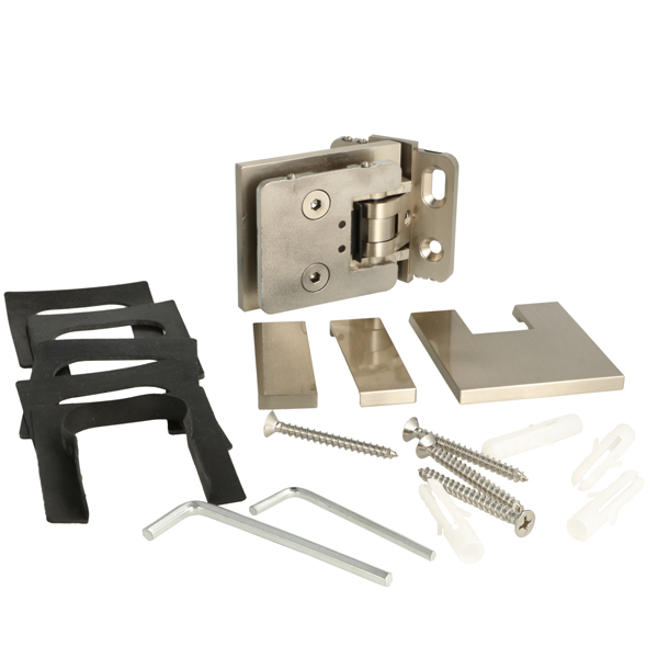 Shower Hinge "Lima", Wall/Glass, SS-Look, Centre Back Pl, 6- 10mm Glass Thickness, W/15 DG Angle Adjustment Function & 15DG Return Function, Brass Material, Hidden Screws. Black Rubber Gaskets: 2 x 1mm & 2 x 2mm Thickness. Load Capacity Pr. Pair: 45kg