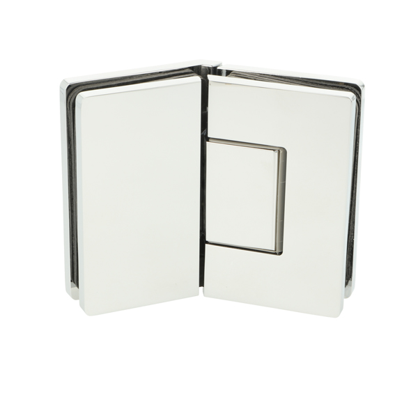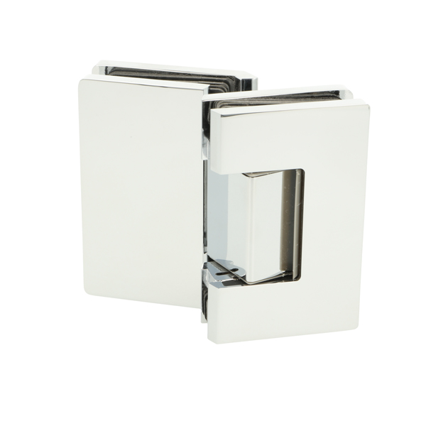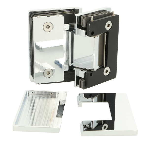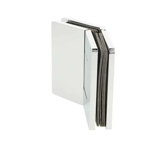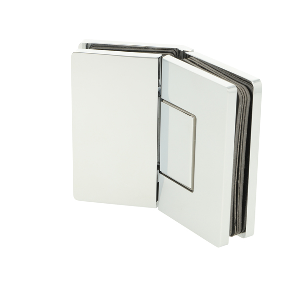 Shower Hinge "Rio", 135DG, CPL, Glass/Glass, 8-10mm Glass Thickness, W/15DG Angle Adjustment Function & 15DG Return Function, Brass Material, Hidden Screws. Black Fiber Gaskets: 2 x 1mm & 2 x 2mm Thickness. Load Capacity Pr. Pair: 45kg