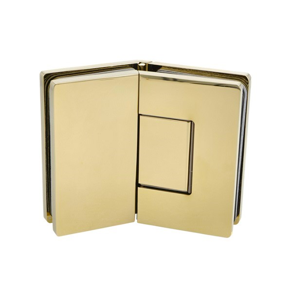 Shower Hinge "Rio", 135DG, Polished Brass, Glass/Glass, 8-10 mm Glass Thickness, W/15 DG Angle Adjustment Function & 15DG Return Function, Brass Material, Hidden Screws. Black Fiber Gaskets: 2 x 1mm & 2 x 2mm Thickness. Load Capacity Pr. Pair: 45kg