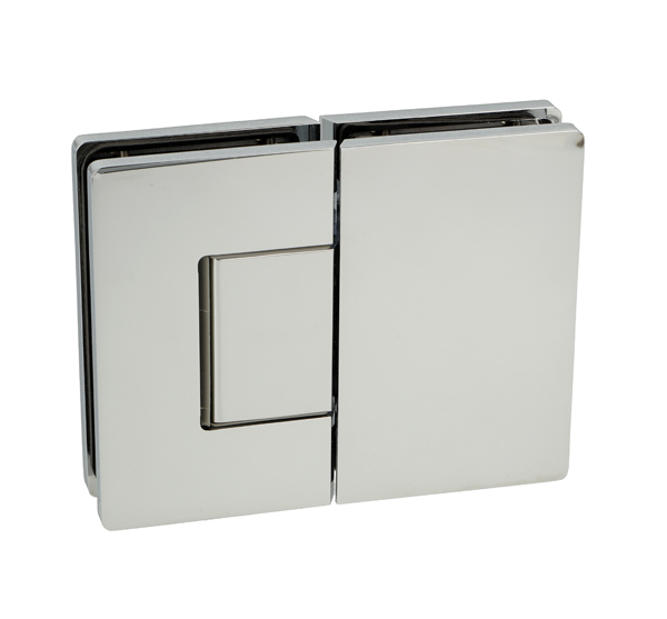Shower Hinge "Rio", 180DG, CPL, Glass/Glass, 8-10mm Glass Thickness, W/15DG Angle Adjustment Function & 15DG Return Function, Brass Material, Hidden Screws. Black Fiber Gaskets: 2 x 1mm & 2 x 2mm Thickness. Load Capacity Pr. Pair: 45kg
