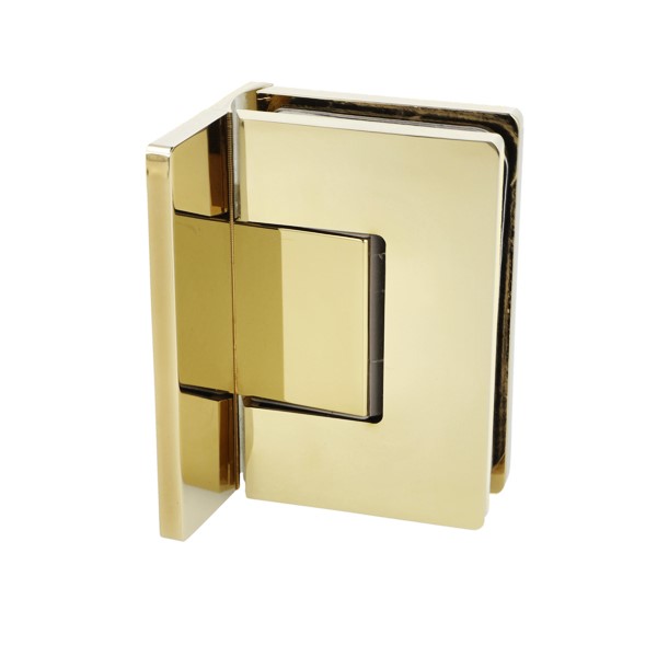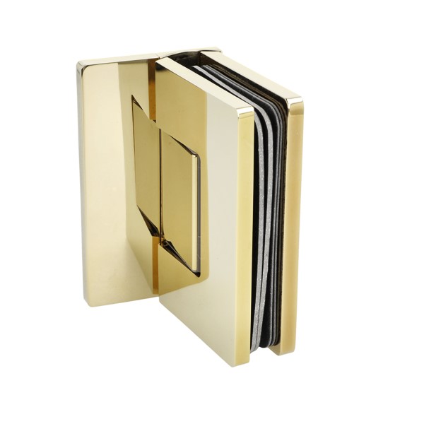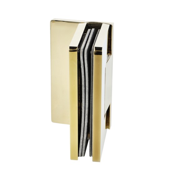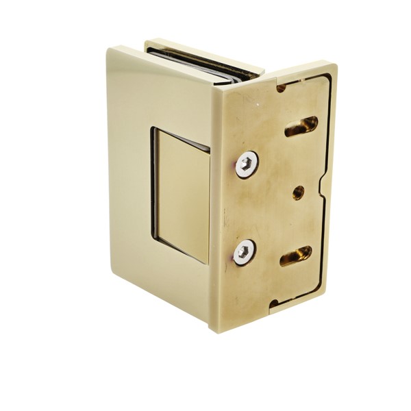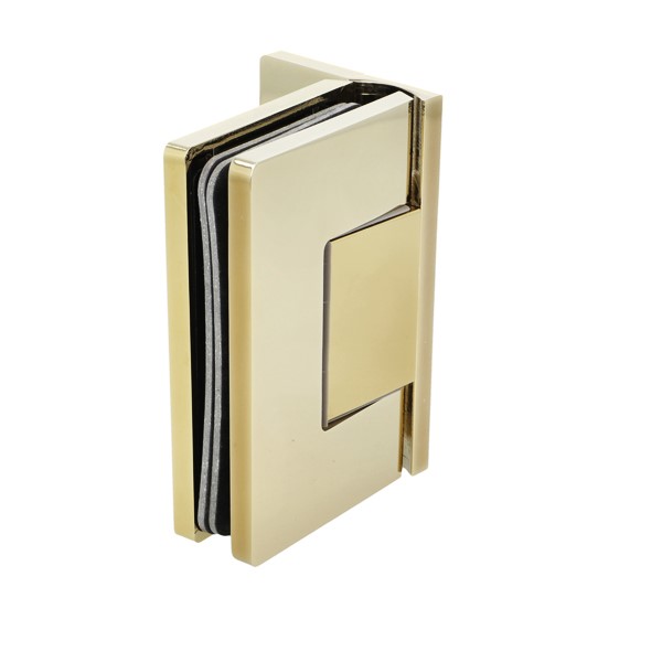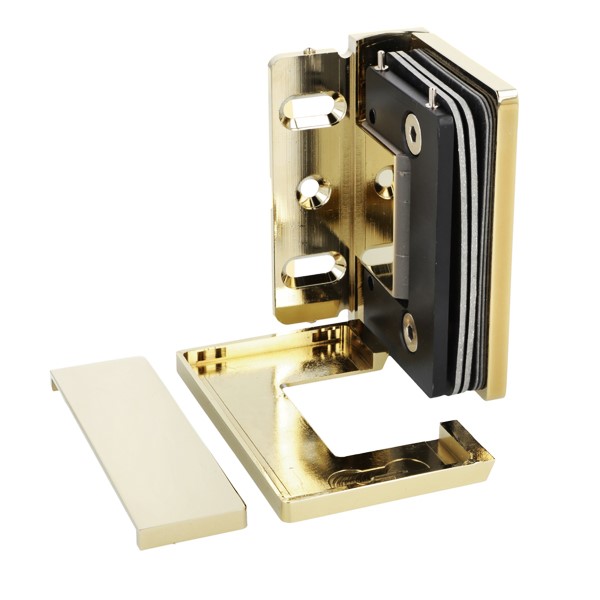 Shower Hinge "Rio", Wall/Glass, Polished Brass, Offset Back , 8-10mm Glass Thickness, W/15 DG Angle Adjustment Function & 15DG Return Function, Brass Material, Hidden Screws. Black Fiber Gaskets: 2 x 1mm & 2 x 2mm Thickness. Load Capacity Pr. Pair: 45kg