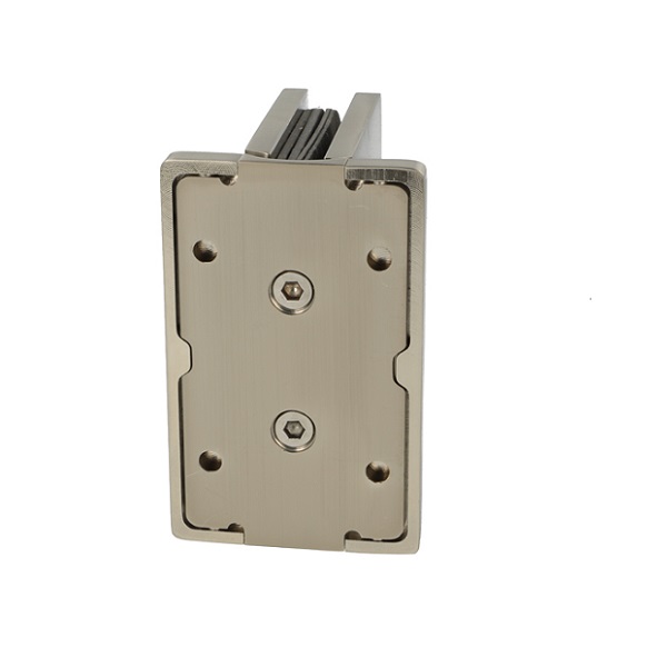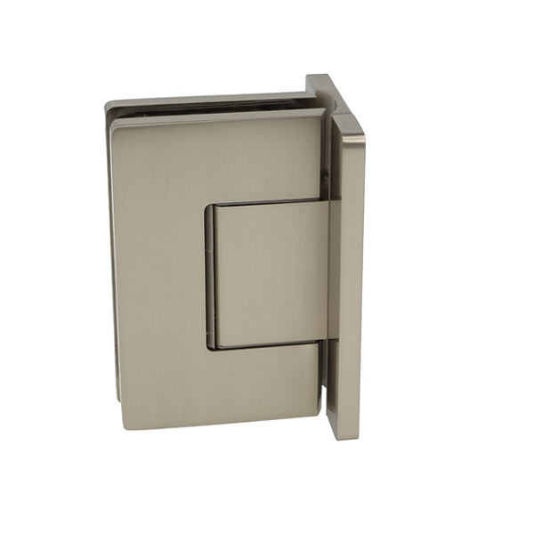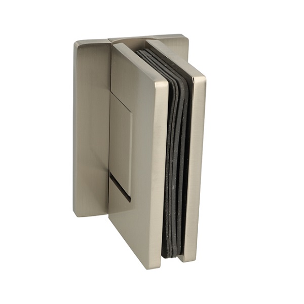 Shower Hinge "Rio", Wall/Glass, SS-Look, Centre Back Plate , 8-10mm Glass Thickness, W/15 DG Angle Adjustment Function & 15DG Return Function, Brass Material, Hidden Screws. Black Fiber Gaskets: 2 x 1mm & 2 x 2mm Thickness. Load Capacity Pr. Pair: 60kg, Max Door Widht: 1200mm.