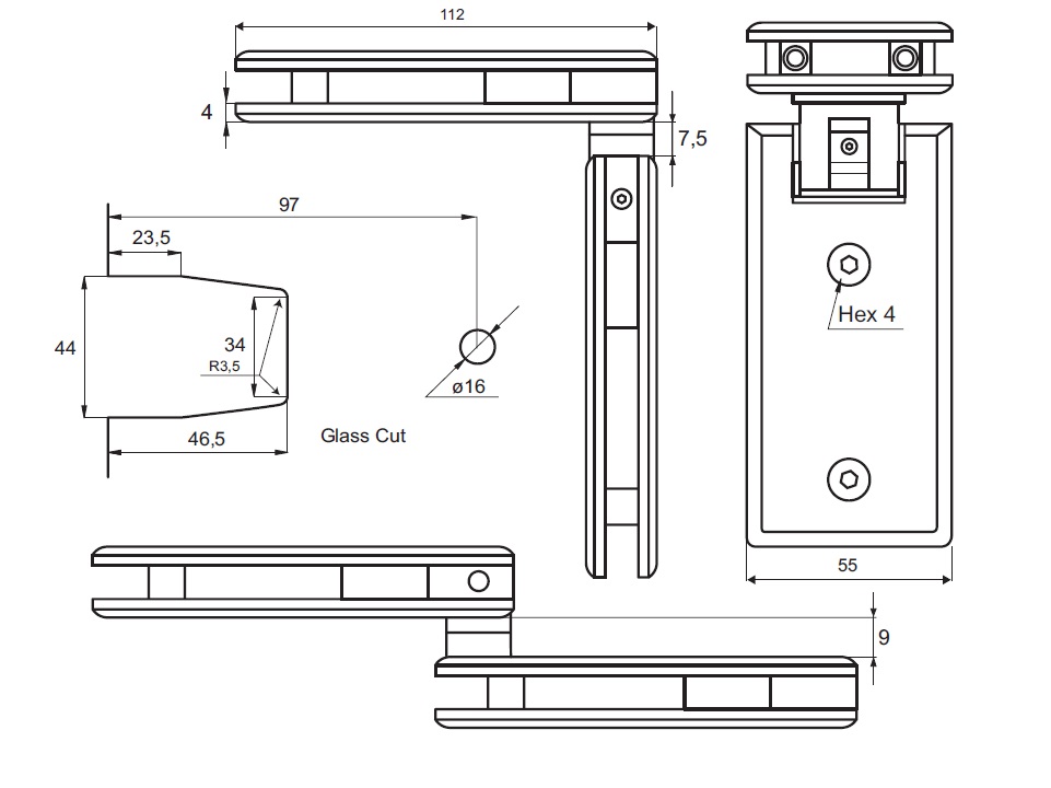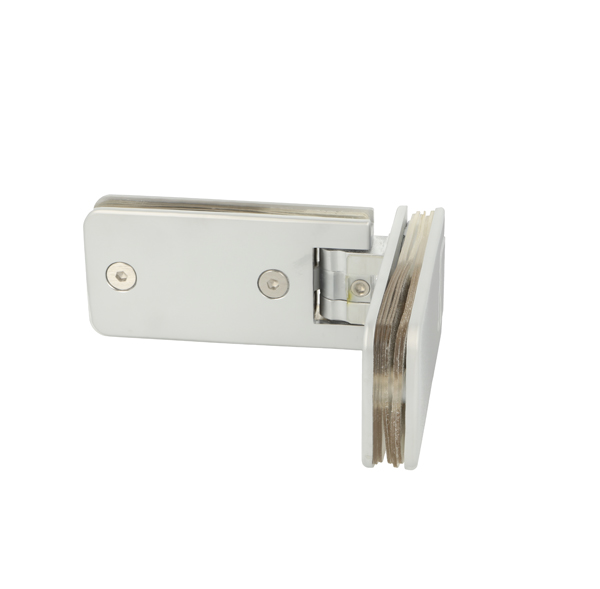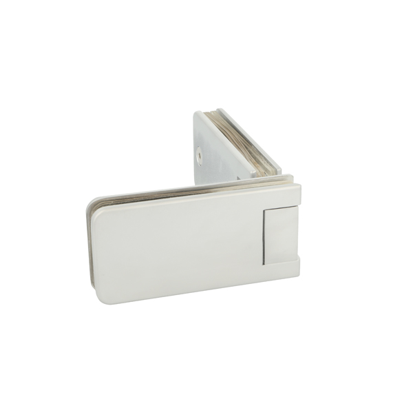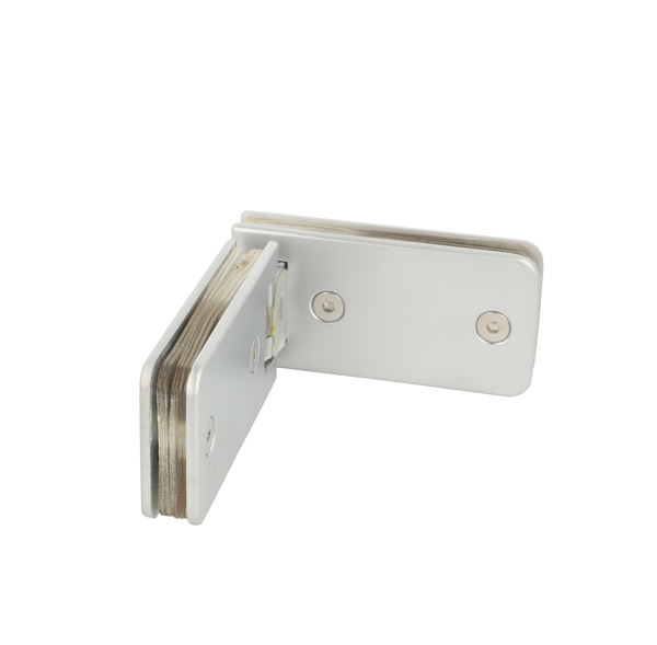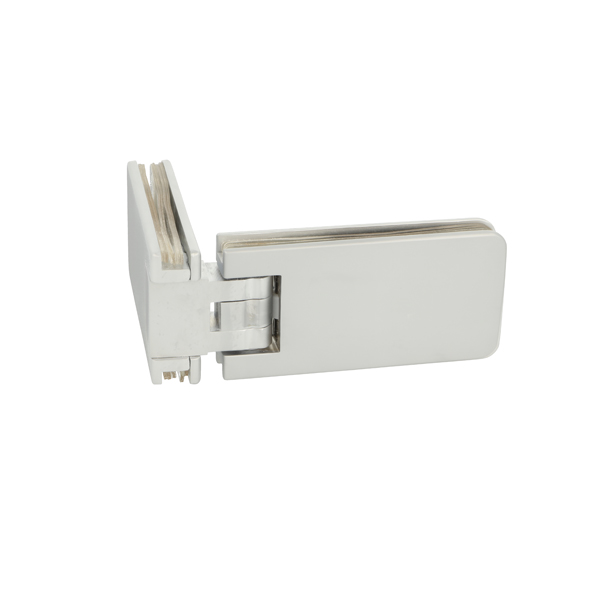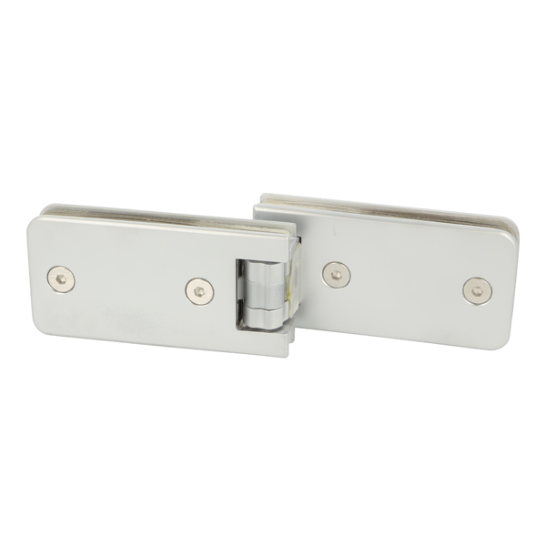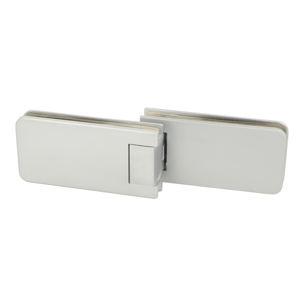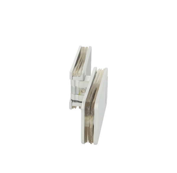 Shower Hinge "King I", 90DG, Alu-Look, Glass/Glass, 6-10mm Glass Thickness, w/Angle Adjustment & 25DG Return Function, Brass Material, Rectagular Shape, Rounded Edges & Corners