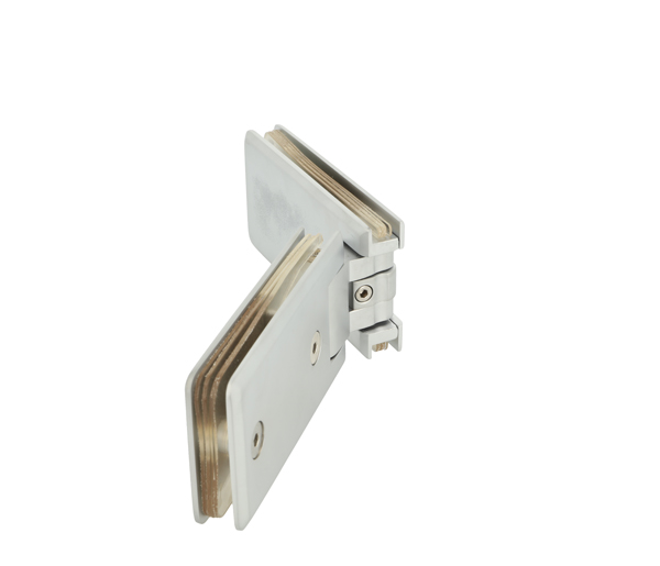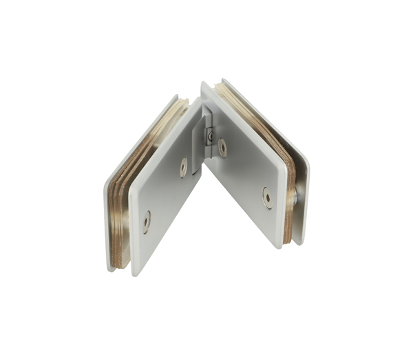 Shower Hinge "Linz", 135DG,Alu-Look,Glass/Glass,6-10mm Glass Thickness,W/Angle Adjustment Function & 25DG Return Function, Brass Material, Rectangular Shape W/Chamfered Edges
