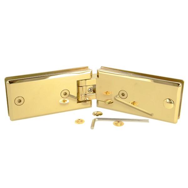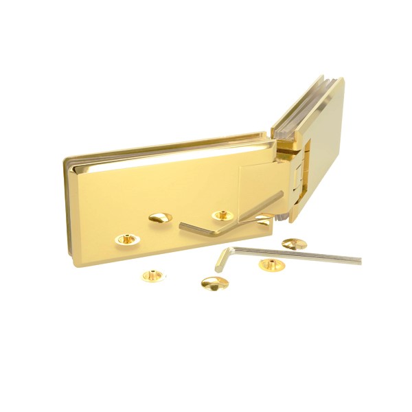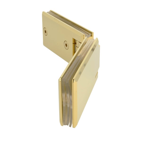 Shower Hinge "Linz", 135DG, Polished Brass, Glass/Glass,6-10 mm Glass Thickness,W/15DG Angle Adjustment Function & 15DG Return Function, Brass Material, Rectangular Shape W/Chamfered Edges