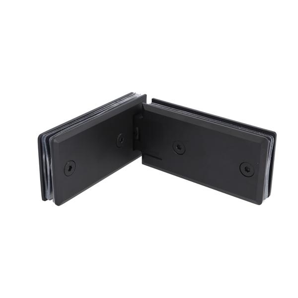 Shower Hinge "Linz", 180DG, Black, Glass/Glass, 6-10mm Glass Thickness,W/15DG Angle Adjustment Function & 15DG Return Function, Brass Material, Rectangular Shape W/Chamfered Edges