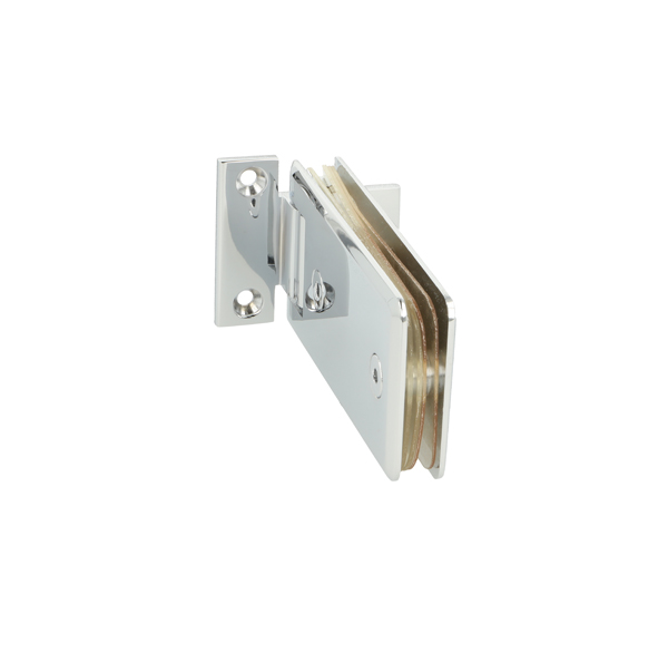 Shower Hinge "Linz", Wall/Glass, CPL, No Adjustment, Centre Back Pl. 6-10mm Glass Thickness,No Angle Adjustment Function but 25DG Return Function, Brass Material, Rectangular Shape w/Shamfered Edges