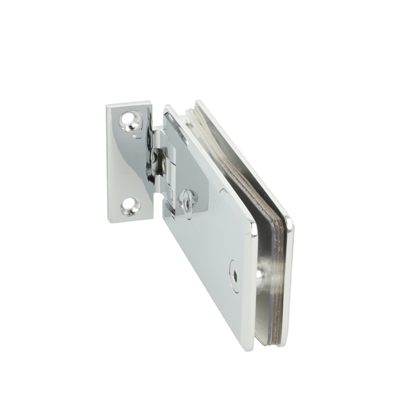 Shower Hinge "Linz", Wall/Glass,CPL, Offset Back Pl,2 Holes 6-10mm Glass Thickness, W/15 DG Angle Adjustment Function & 15DG Return Function, Brass Material, Rectangular Shape w/Chamferede Edges