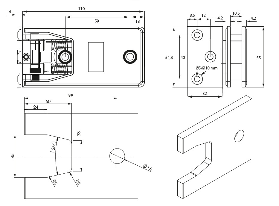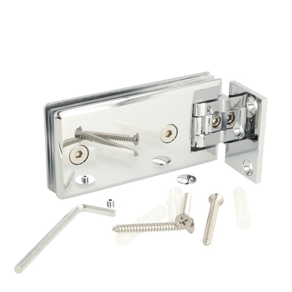 Shower Hinge "Linz", Wall/Glass,CPL, Offset Back Pl, 3 Holes, 6-10mm Glass Thickness, W/15 DG Angle Adjustment Function & 15DG Return Function, Brass Material, Rectangular Shape w/Chamferede Edges