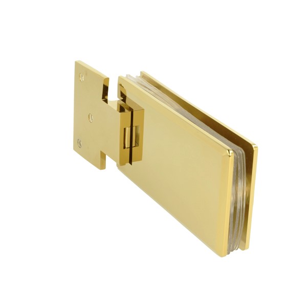 Shower Hinge "Linz", Wall/Glass, Polished Brass,Offset Back 3 Holes, 6-10mm Glass Thickness, W/15 DG Angle Adjustment Function & 15DG Return Function, Brass Material, Rectangular Shape w/Chamferede Edges