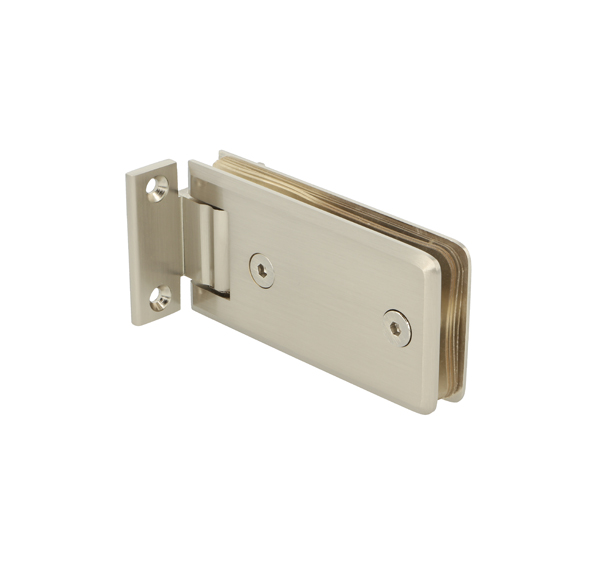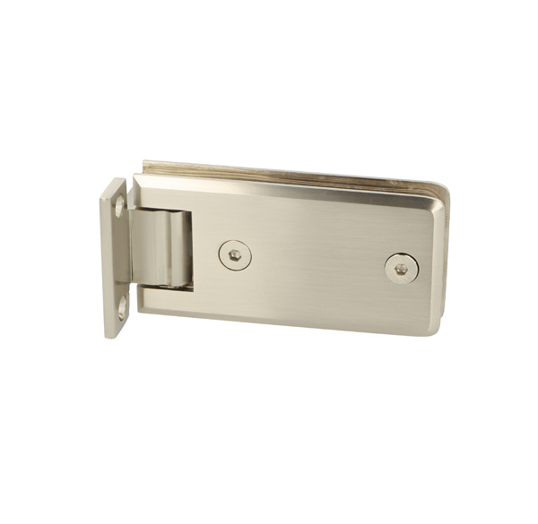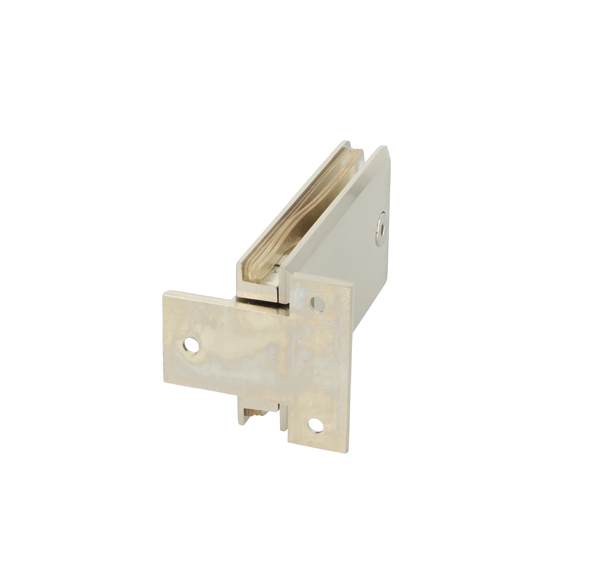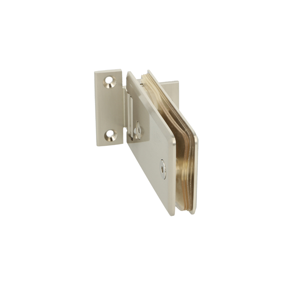 Shower Hinge "Linz", Wall/Glass,SS-Look,No Adjustment,Centre Back Pl. 6-10mm Glass Thickness,No Angle Adjustment Function but 25DG Return Function, Brass Material, Rectangular Shape w/Shamfered Edges