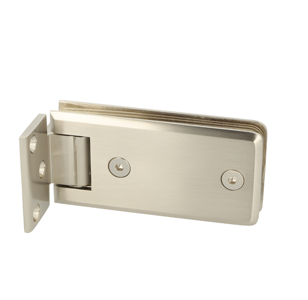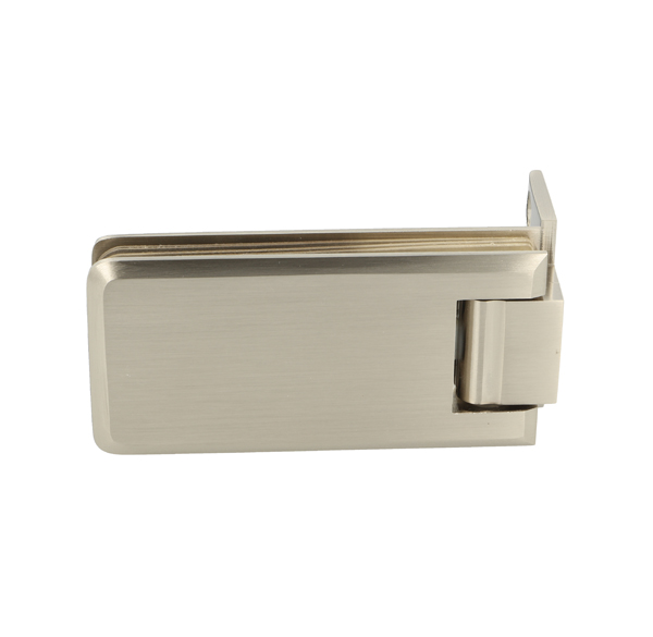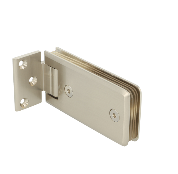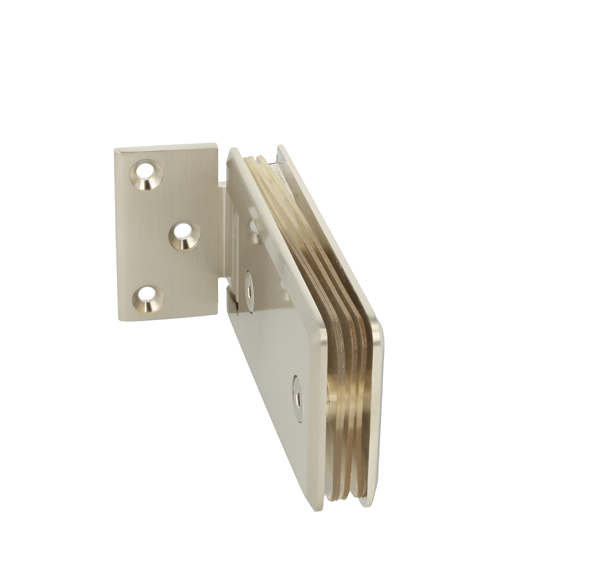 Shower Hinge "Linz", Wall/Glass,SS-Look, No Adjustment, Off- set Back Plate, 3 Holes, 6-10mm Glass Thickness, No Angle Adjustment Function but 25DG Return Function,Brass Material, Rectangular Shape, w/Chamferede Edges