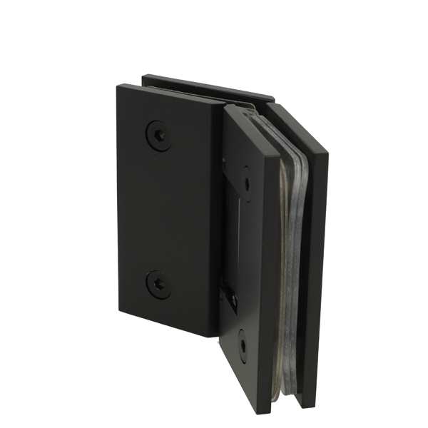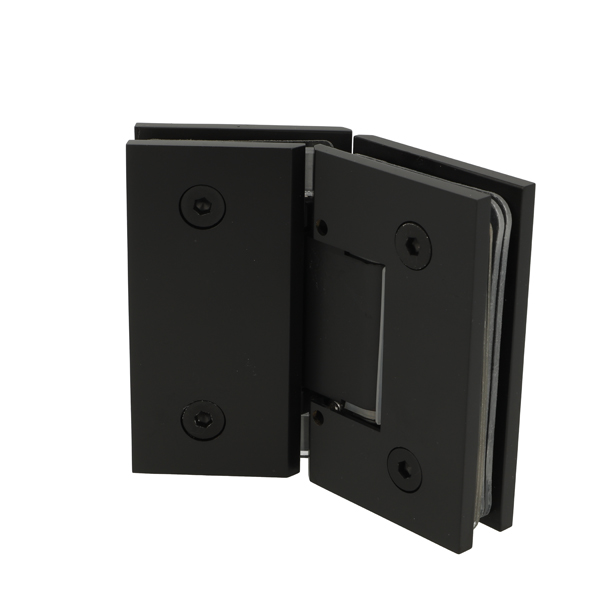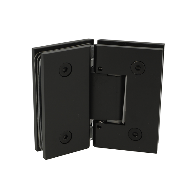 Shower Hinge "Tex III", 135DG, Black Finish, Glass/Glass, 6- 10mm Glass Thickness,W/15DG Angle Adjustment Function & 25DG Return Function, Brass Material, Straight Edges Incl. 4 x Transp. 1mm & 4 x Transp. Cushions 2mm Thickness