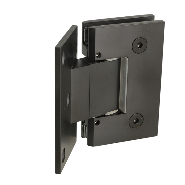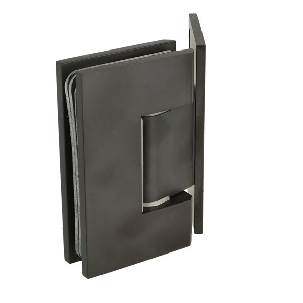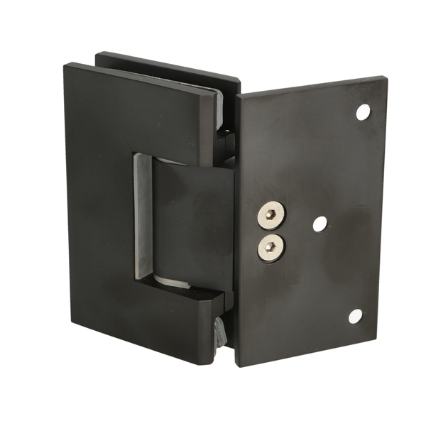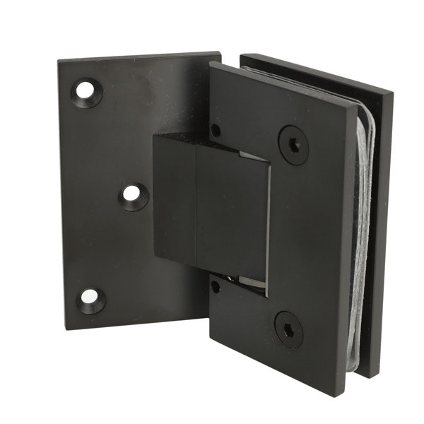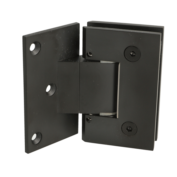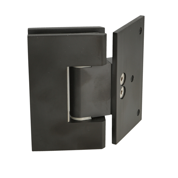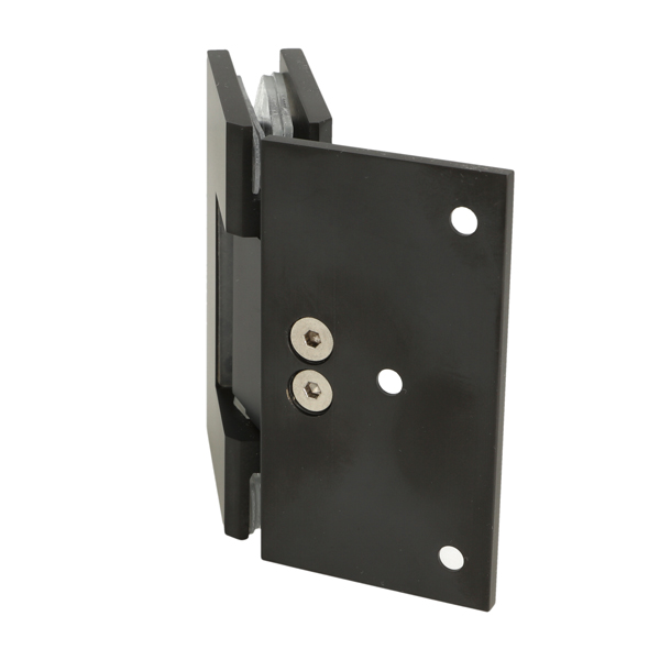 Shower Hinge "Tex III", 135DG, Black Finish, Wall/Glass, Offset Backpl., 6-10mm. Glass Thickness, W/15 DG Angle Adj. Function & 25DG Return Function, Brass Material, Straight Edges,Incl. 2 x Transp. 1mm & 2 x Transp. Cushions 2mm Thickness
