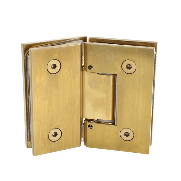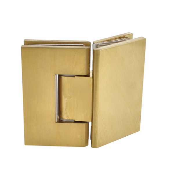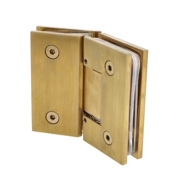 Shower Hinge "Tex III", 135DG, Brushed Brass, Glass/Glass, 6-10mm Glass Thickness, W/15 DG Angle Adjustment Function & 25DG Return Function, Brass Material, Straight Edges Incl. 4 x Transp. 1mm & 4 x Transp. Cushions 2mm Thickness