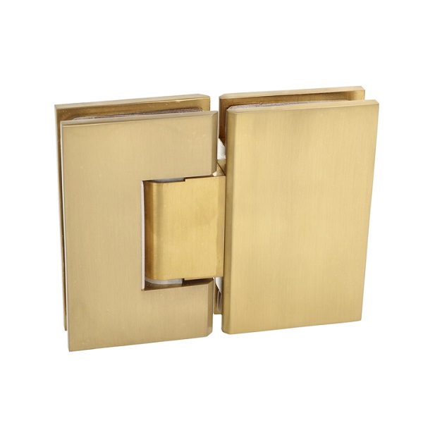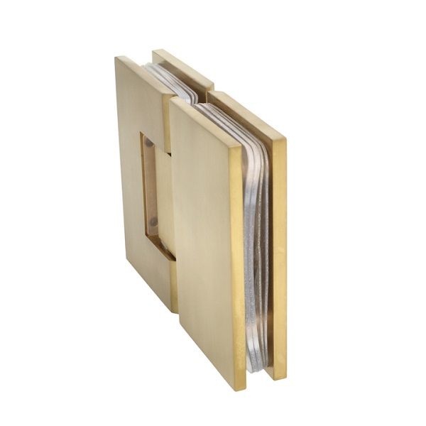 Shower Hinge "Tex III", 180DG, Brushed Brass, Glass/Glass, 6-10mm Glass Thickness, W/15 DG Angle Adjustment Function & 25DG Return Function, Brass Material, Straight Edges Incl. 4 x Transp. 1mm & 4 x Transp. Cushions 2mm Thickness