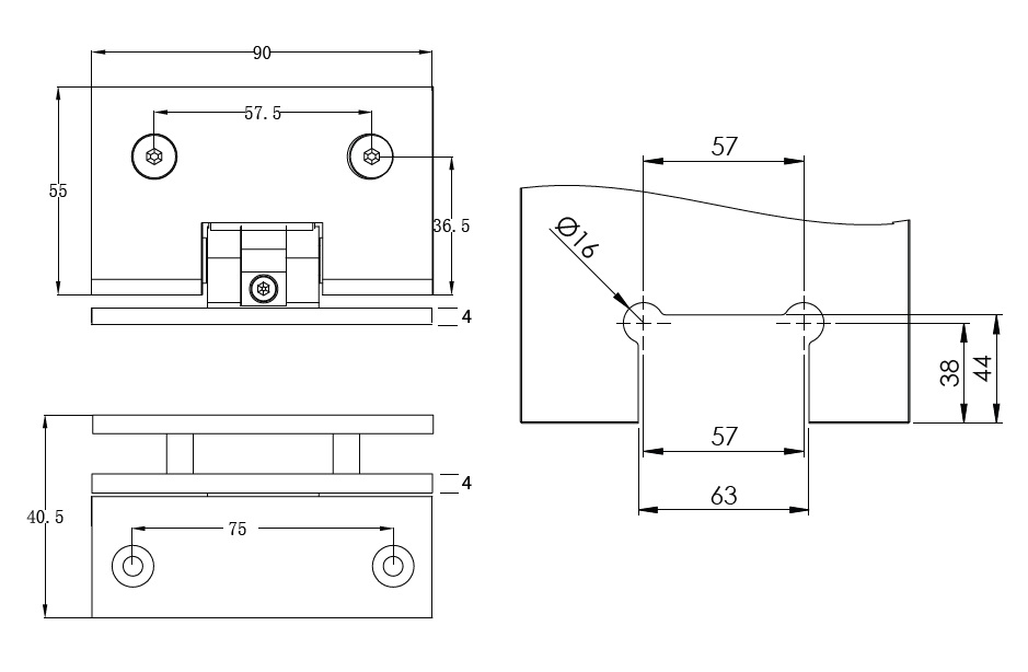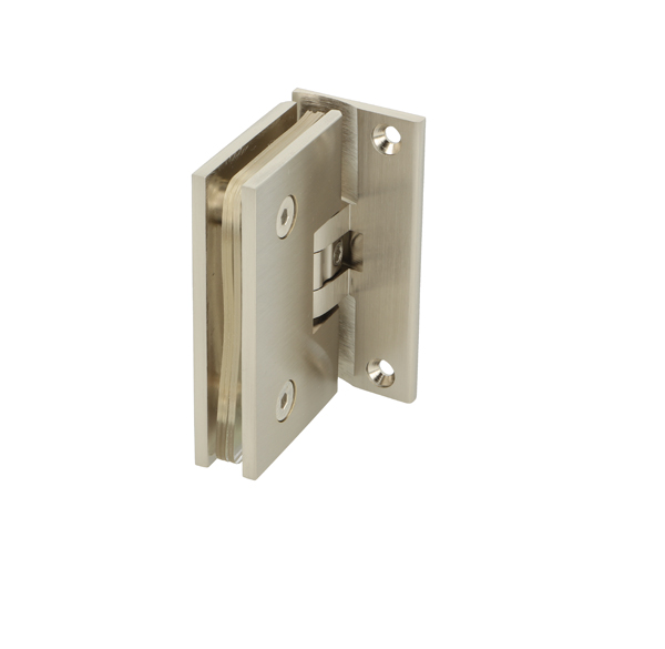 Shower Hinge "Turku" 90DG, SS-Look, Offset Back Pl, 6-10mm Glass Thickness, W/Angle Adjustment Function & 25DG Return Function, Brass Material, Straight Edges