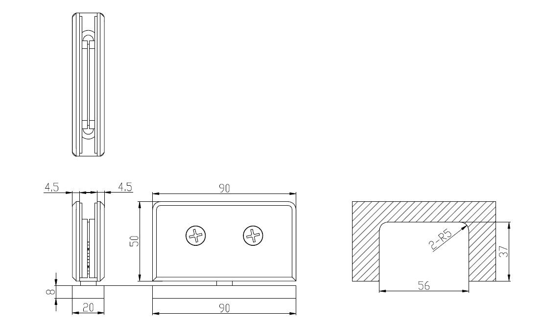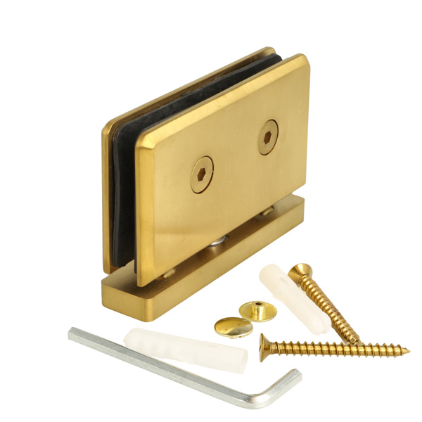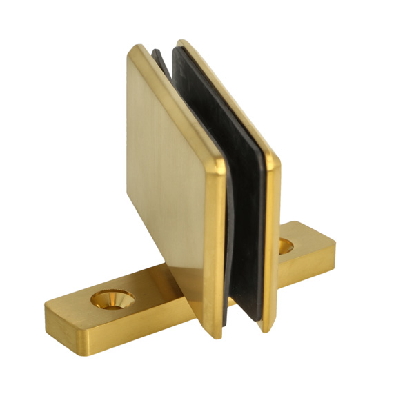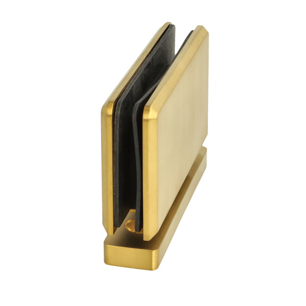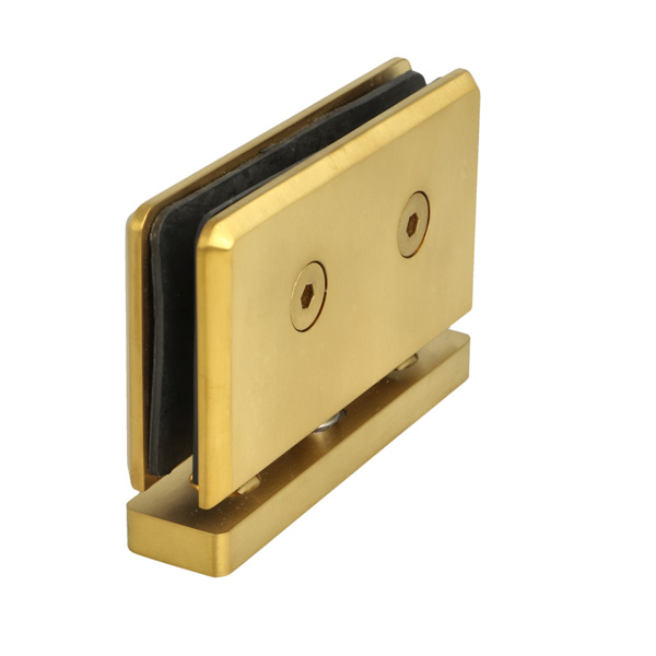 Shower Pivot Hinge "Lodz", Floor/Glass, Brushed Brass, 50x90 x20mm, Brass Material, Incl. Gaskets, Screws & Templates, Self-Centering When Within 15DG, Of Closed Position, 8-10mm Glass Thickness