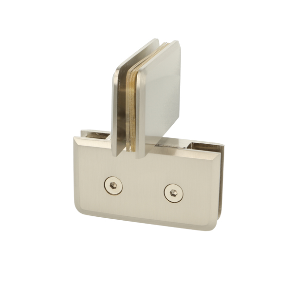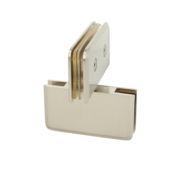 Shower Pivot Hinge "Lodz", Glass/Glass, SS-Look, 50x92x21mm, Brass Material, Incl. Gaskets, Screws & Templates, Self- Centering When Within 15DG, Of Closed Position, 8-10mm Glass Thickness
