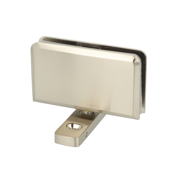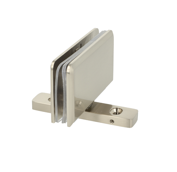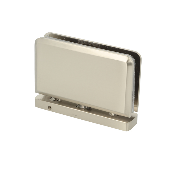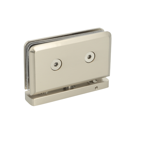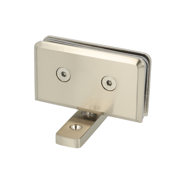Shower Pivot Hinge "Lodz II", Floor/Glass,SS-Look,51,5x92x21 mm, With Adjustable Base, Brass Material, Incl. Gaskets, Screws & Templates, Self Centering When Within 15DG Of Closed Position, 8-10mm Glass Thickness Load Capacity: 20 kg Pr. Hinge, Max Glass Width: 800mm