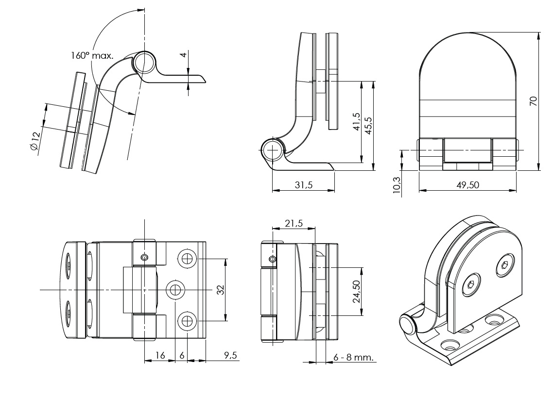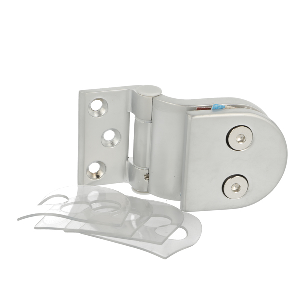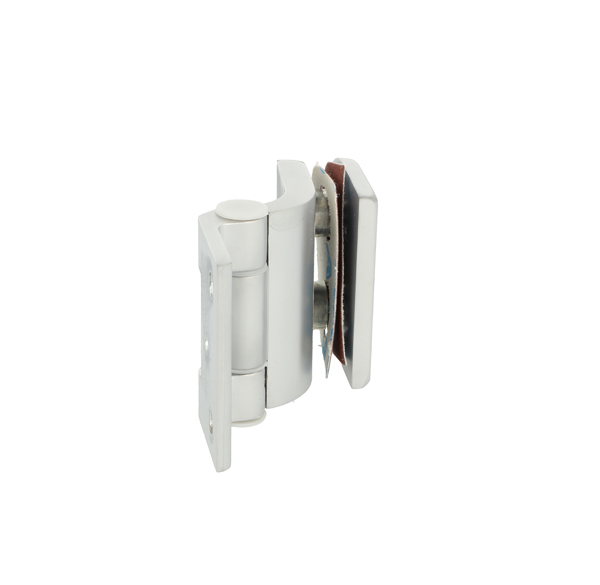 Sauna Hinge F/Glass Doors, "Suomi", Alu Finish, Bracket Mounting, Cranked, Zamak Material
