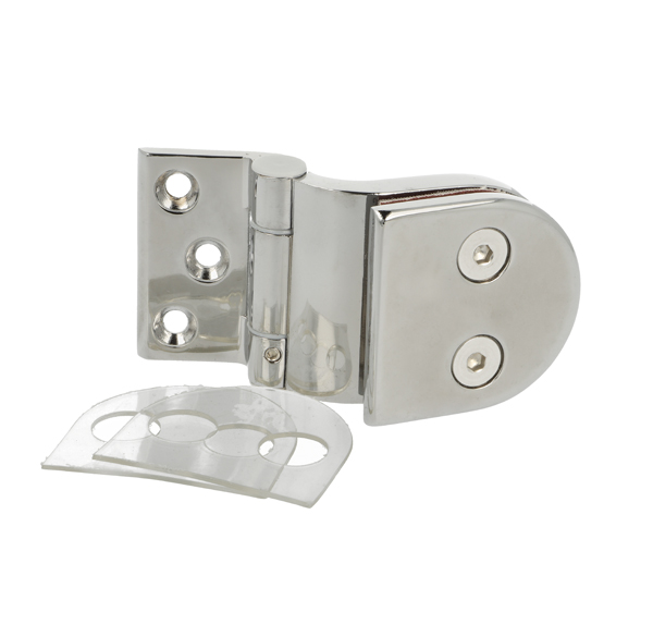 Sauna Hinge F/Glass Doors, "Suomi", Chrome Pl, Bracket Mounting, Cranked, Zamak Material