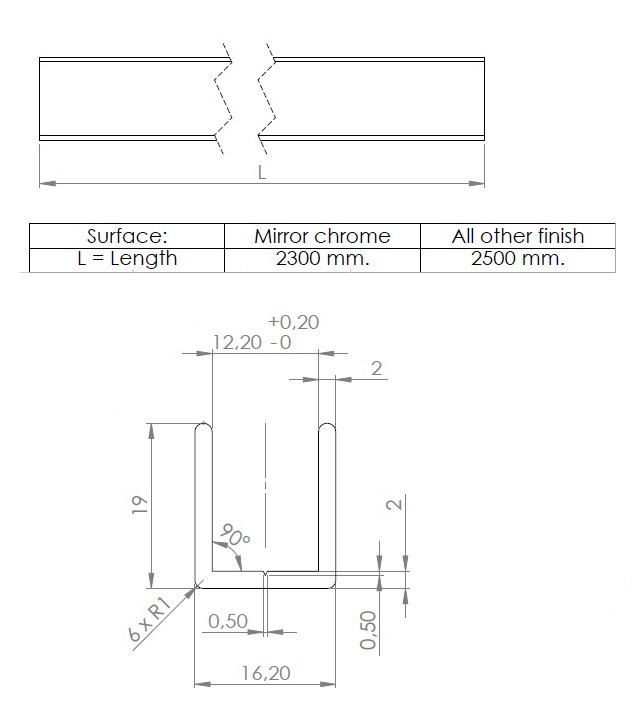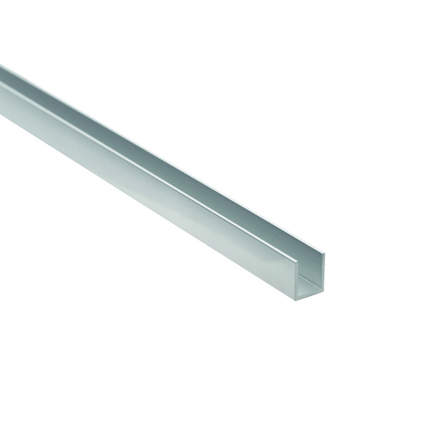 Alu. U-Channel,F/12mm Glass,Polished Alu,2,5 Mtr,2x19x16,2mm