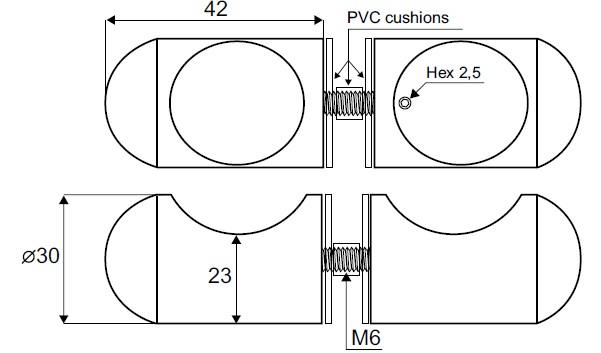 Brass Door Knob "Eutin", ø30mm, CPL, 6-12mm Glass, Drill Hole ø10 mm