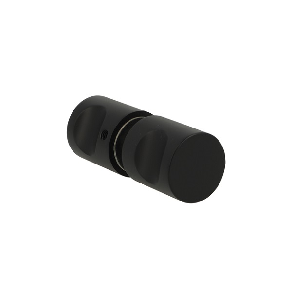 Brass Door Knob "Haag II", ø28mm, Black Finish,6-12mm Glass Thickness, With Insert Brass Bushing, Drill Hole ø10 mm