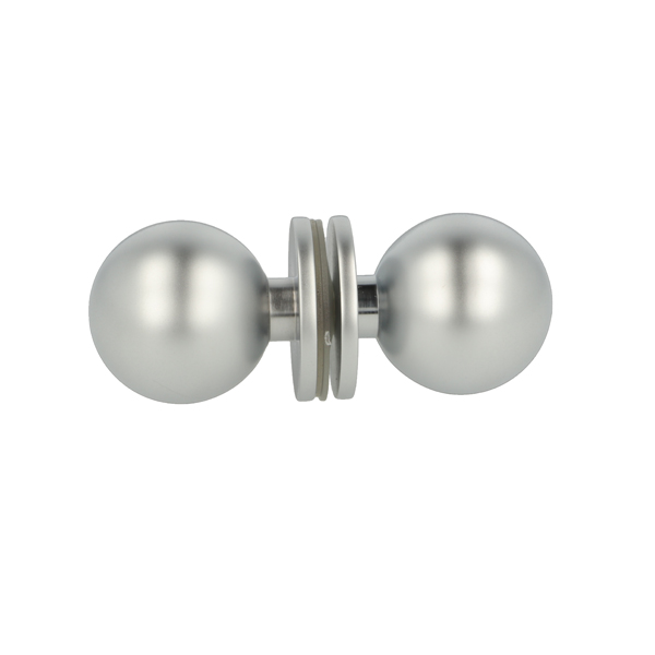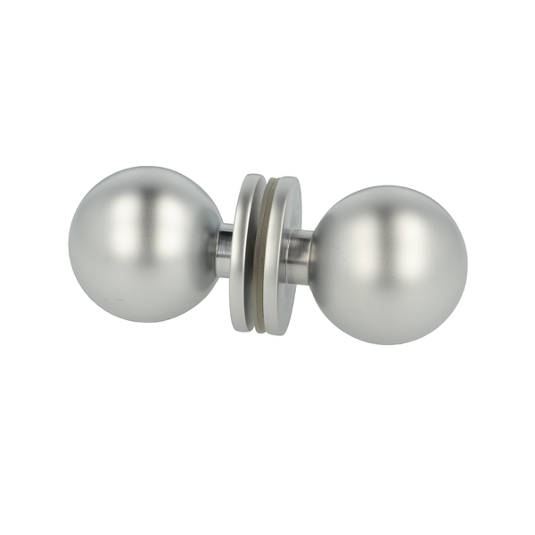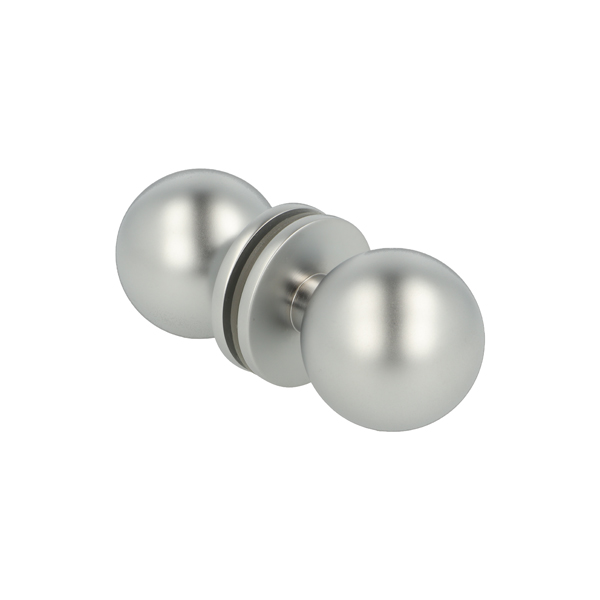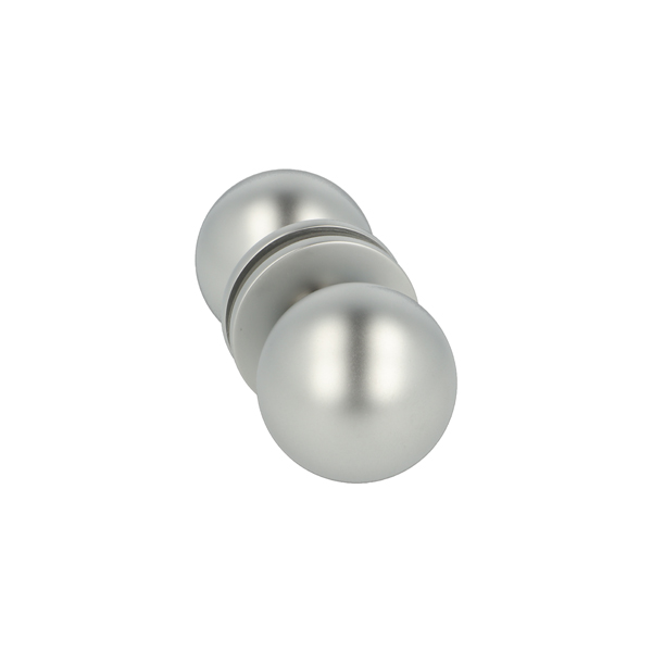 Brass Door Knob "Paris", ø35mm, Alu-Look, 8-12mm Glass, Drill Hole ø12 mm
