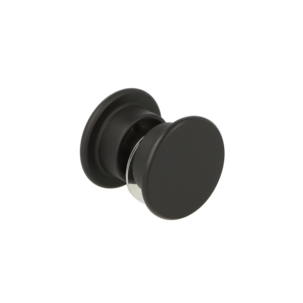 Door Knob "Kiel", ABS Plastic, ø39mm, Black Finish, 6-12mm Glass, Drill Hole ø15 mm