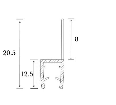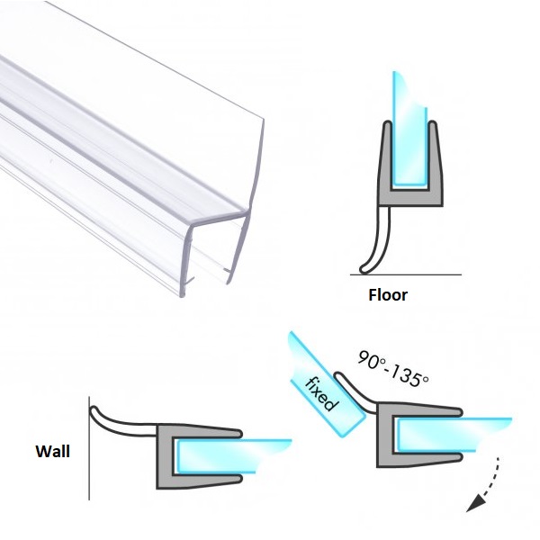 PVC Seal Glass To Floor, S-5702, 2,5 Mtr, F/10mm Glass ,With 8mm Soft Fin
