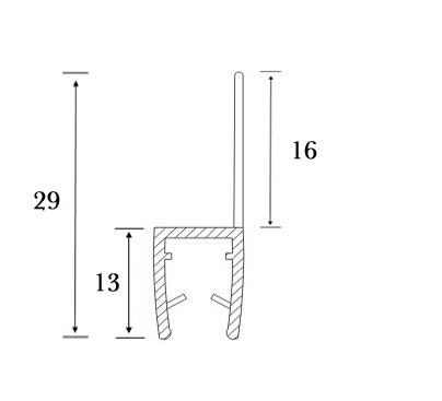 PVC Seal Glass To Floor, S-5714, 2,5 Mtr, F/12mm Glass ,With 16mm Soft Fin