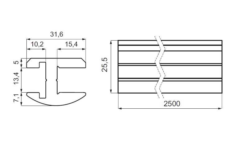 Alu. Profile F/"Sputnik" Shower System, 2,5 Mtr, Pol. Alu, 8-12mm Glass