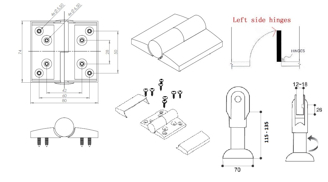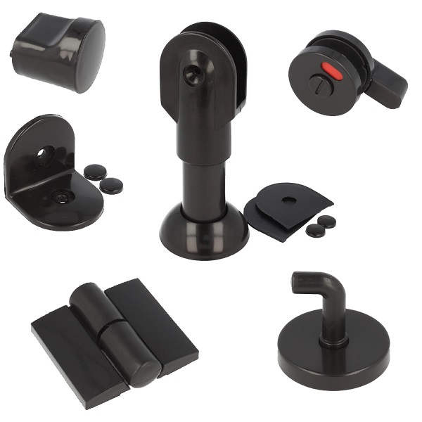 Toilet Cubicle Fit, Black, PP, Left, Leg 115-135mm, Consist off 2 Handles, 1 Hook , 1 Lock, 12 Angle Brackets, 2 Hinges & 2 Stands, F/12-18mm Panels, F/Left Hand Doors