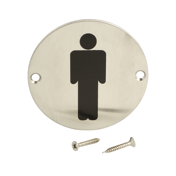 Toilet Sign "Male", ø76x1,5mm, Screw-On, SS201 Brushed, W/ ø3,5x20mm Screws