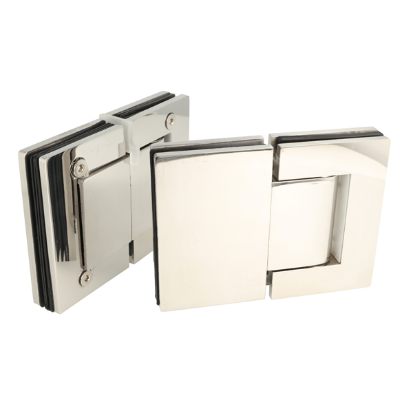 Soft Close Hinge "Klap II", Glass/Glass,SS-304, Polished,8- 14mm, Back Plate, Polished, Max Door Weight: 60KG, Max Door Height 2400mm, Max Door Width: 1000mm, Self-Closing at 85DG, Hold-Open at 90DG, Max Door Angle 95DG. Tested According to EN1154