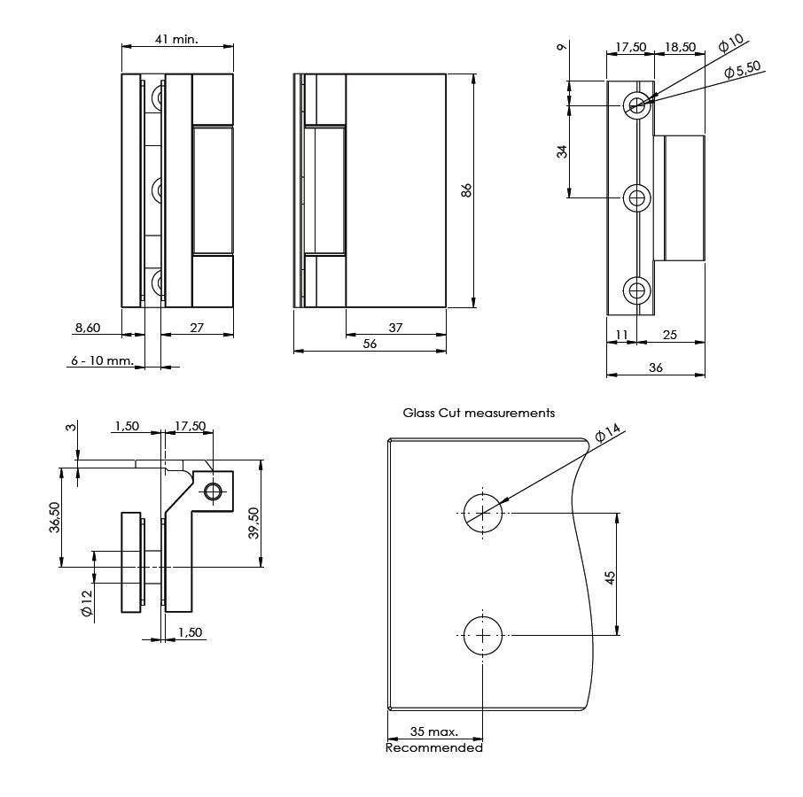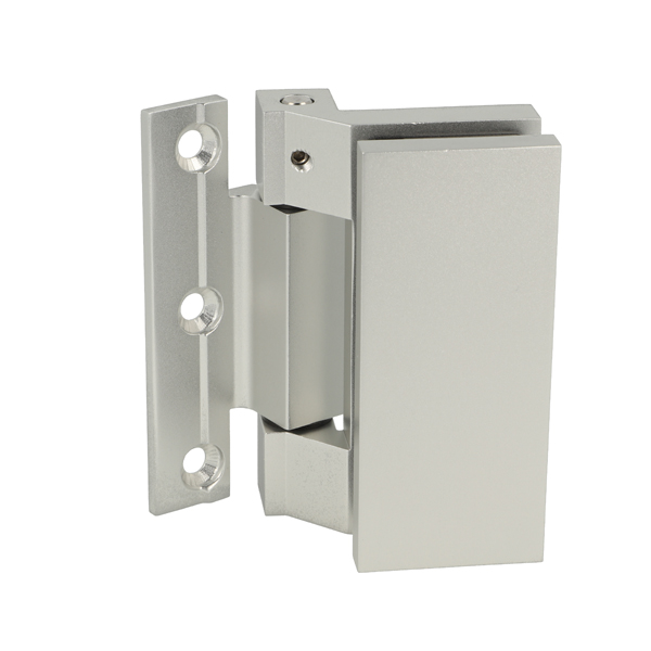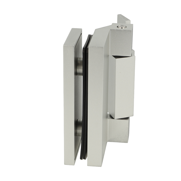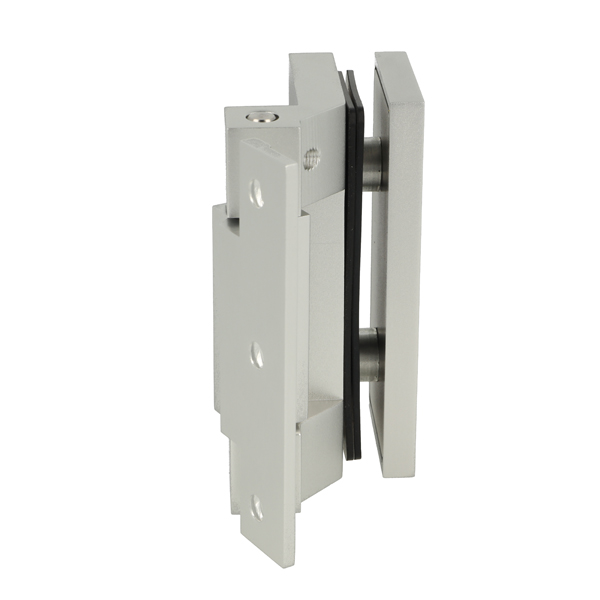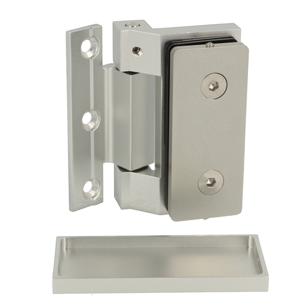 Glass Door Hinge "Kiev", Wall/Glass, Alu-Look, 6-10mm Glass With Cover Plates, Load Capacity 36kg pr. Pair