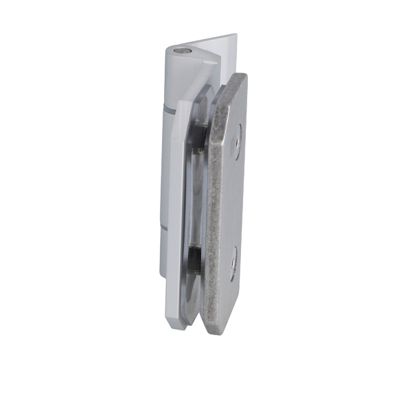 Glass Door Hinge "Riga", Wall/Glass, Alu-Look, 6-10mm Glass Without Cover Plates,Cover Plates To Be Ordered Seperately Load Capacity 36kg pr. pair