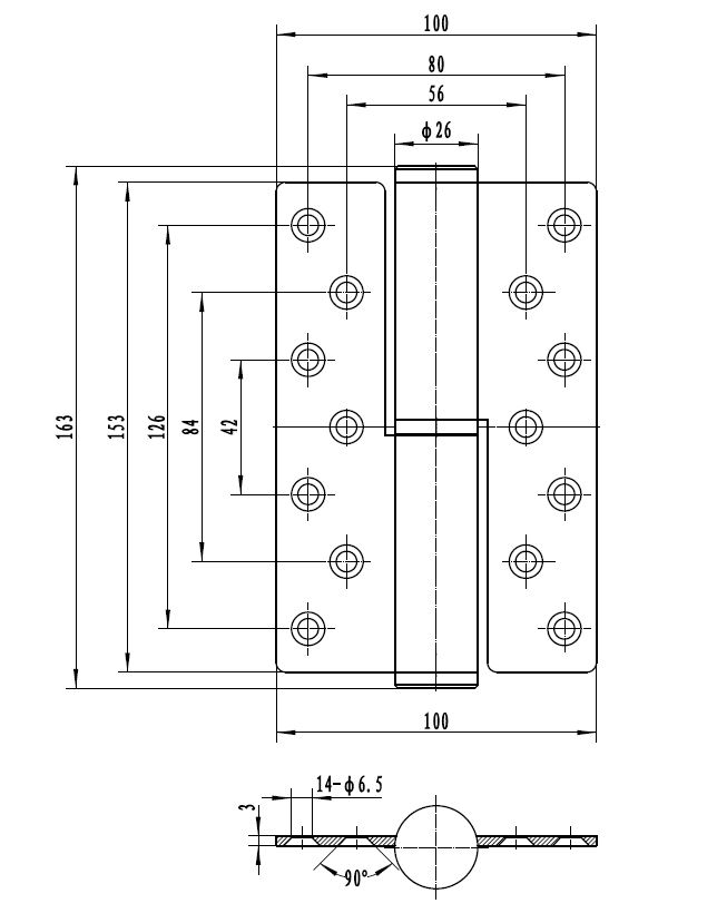 Hydraulic Hinge, 80kg, LH (3 Pcs), SS304, 90 Degrees Hold- Open, Max. Opening Angle 180 Degrees