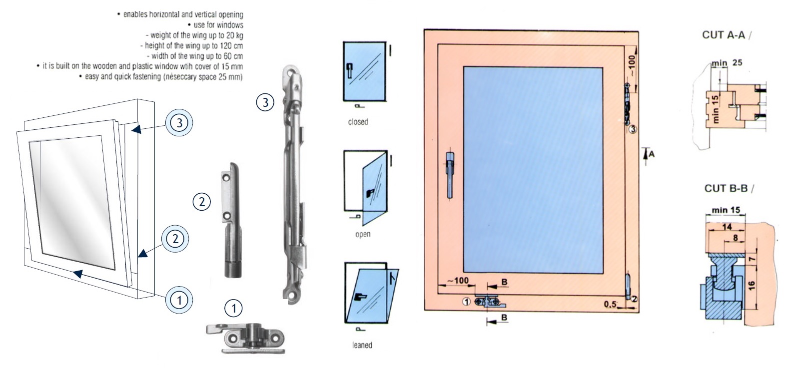 Window Fittings, Left, 6 Parts+Screws,Steel & Zamak, BZP