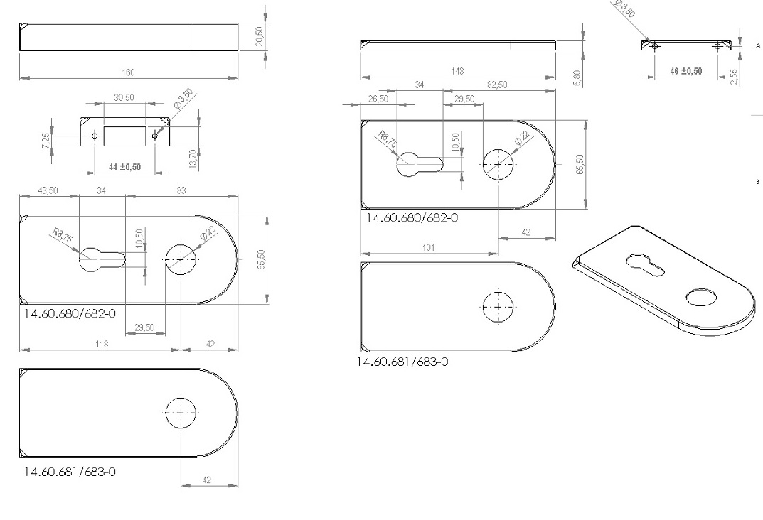 Cover Plates Brushed SS-304, F/"Clark", W/Handle & Cylinder Hole