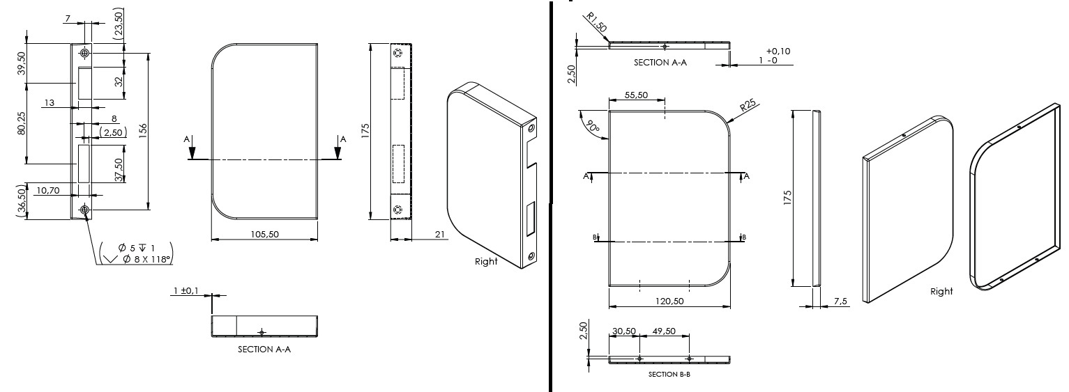 Cover Plates For Striker "Robin", Right, SS-304 Brushed